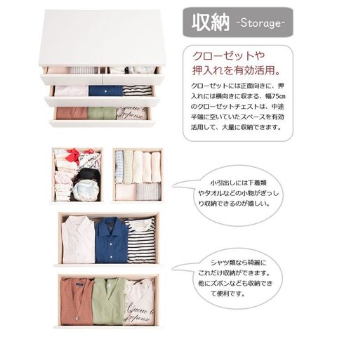 クローゼット チェスト タンス 日本製 洋服タンス 幅75cm キャスター付 3段 整理タンス 完成品 ホワイト SA-0026