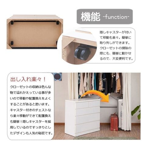 クローゼット チェスト タンス 日本製 洋服タンス 幅75cm キャスター付 4段 整理タンス 完成品 ホワイト SA-0027