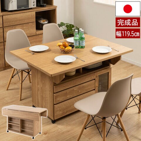 バタフライ カウンターテーブル 幅119.5cm 移動ができる机 折りたたみ式 両バタカウンター キャスター付 日本製 完成品 NO-0172-NS
