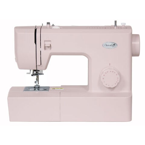 「ドロシー」は、優しいくすみカラーが魅力の電動ミシンです。可愛い見た目ながら機能も本格的で、パワフルなモーターによりジーンズの重ね縫いもスムーズにこなせます。初心者にも優しい設計が特徴で、面倒な針穴への糸通しはレバーひとつで完了する「自動針穴糸通し」、下糸のセットが簡単でからみにくい「水平全回転釜」を採用しています。操作はダイヤルを回すだけで、直線、ジグザグ、まつりぬい、ボタンホールなど16種類の実用的なステッチを簡単に切り替えられます。さらに、袖口やズボンの裾上げに便利なフリーアーム機能や、手元を明るく照らすLEDライトも搭載。デザイン性と使いやすさを兼ね備え、ハンドメイドをこれから始めたいという方にも最適な一台です。