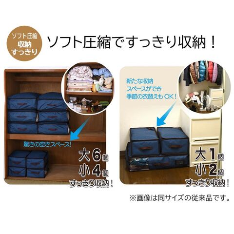 | 収納量の目安 | 羽毛布団(シングル、ダブル、クイーン):1~2枚、肌掛け布団:6~8枚 毛布:3~5枚、ダウンジャケット:12~15枚、コート:12~15枚 |