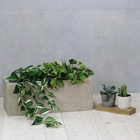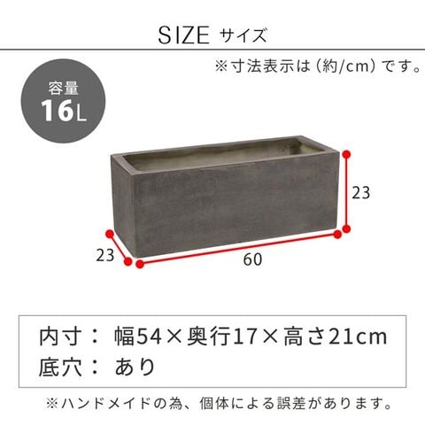 軽くて扱いやすいFRP(繊維強化プラスチック)製のプランター。ナチュラルにもモダンにも使えるレクタングル型。耐久性・耐水性もよく屋外室内どちらでもご利用いただけます。間仕切りや目隠し、アクセントとしても優秀で、圧迫感がなく癒し効果アップ!軽量で丈夫な樹脂製なので、花壇のレイアウト変更も楽にできて、高層階や屋上への持ち運びも簡単です。腐食にも強いため、庭や店舗の外にも最適。屋外の使用でも劣化が比較的少なく、草花や球根の寄せ植えはもちろん、家庭菜園など様々な栽培に適しています。幅は60cmと80cmの2サイズ展開、カラーはグレーとアンティークホワイトの2色からお選びいただけます。