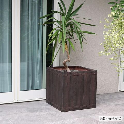 軽くて扱いやすいFRP(繊維強化プラスチック)製のプランター。汎用性が高く飽きのこないシンプルモダンなキューブ型。耐久性・耐水性もよく屋外室内どちらでもご利用いただけます。軽量で丈夫な樹脂製なので、花壇のレイアウト変更も楽にできて、高層階や屋上への持ち運びも簡単です。腐食にも強いため、庭や店舗の外にも最適。屋外の使用でも劣化が比較的少なく、草花や球根の寄せ植えはもちろん、家庭菜園など様々な栽培に適しています。幅は40cmと50cmの2サイズ展開、カラーはダークブラウンとホワイトの2色からお選びいただけます。