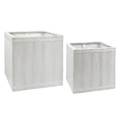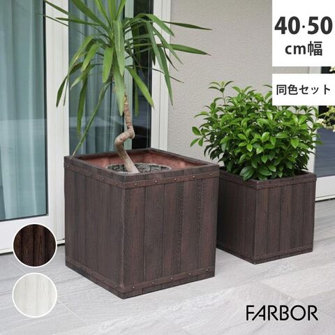 ファーバー 木調FRPプランター 大小同色2個セット 幅40cm 幅50cm 角型 FARBOR 水抜き穴あり E002-CU4050S