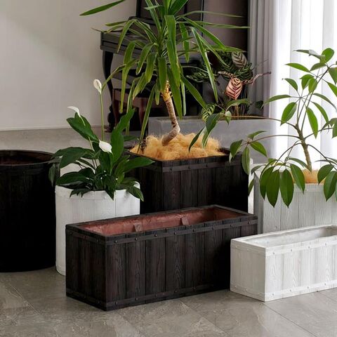 軽くて扱いやすいFRP(繊維強化プラスチック)製のプランター。横長で空間の仕切りにも使える長角型。耐久性・耐水性もよく屋外室内どちらでもご利用いただけます。軽量で丈夫な樹脂製なので、花壇のレイアウト変更も楽にできて、高層階や屋上への持ち運びも簡単です。腐食にも強いため、庭や店舗の外にも最適。屋外の使用でも劣化が比較的少なく、草花や球根の寄せ植えはもちろん、家庭菜園など様々な栽培に適しています。幅は60cmと80cmの2サイズ展開、カラーはダークブラウンとホワイトの2色からお選びいただけます。