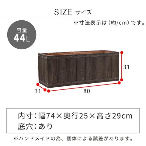 | サイズ(約) | 幅80×奥行31×高さ31cm 内寸/幅74×奥行25×高さ29cm ※ハンドメイドのため、個体による誤差があります。 |
