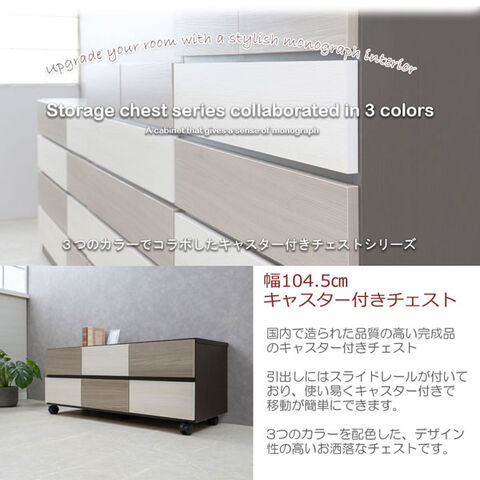 キャスター付チェスト 幅104.5cm FIGO おしゃれキャビネット ローボード 充実の収納力 収納家具 日本製 完成品 SI-0020-NS