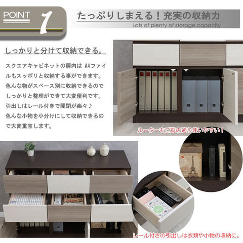 スクエアキャビネット 幅104.5cm FIGO おしゃれチェスト 充実の収納力 収納家具 日本製 完成品 SI-0018-NS
