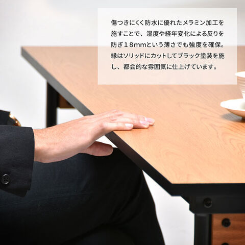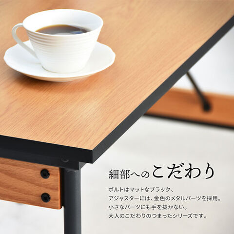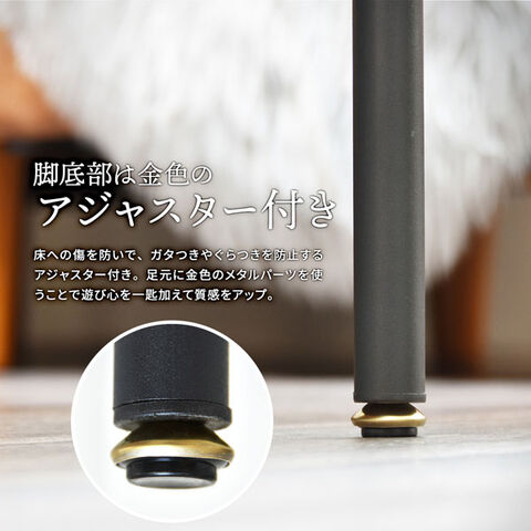 | 材質 | 天板/パーティクルボードにメラミン貼り フレーム/スチールパイプ(粉体塗装/ゴールドメッキ塗装)、オークの天然木(ラッカー塗装) |