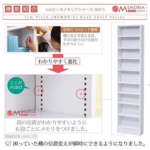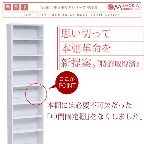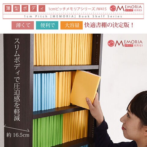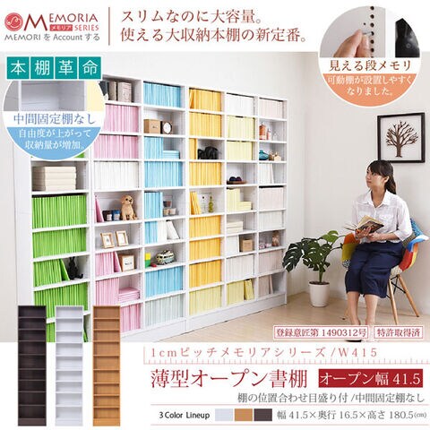 本棚 薄型オープン書棚 幅41.5cm 奥行16.5cm MEMORIA 棚板が1cmピッチで可動する自在な棚割り FRM-0100-JK