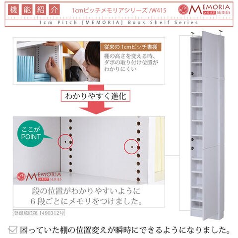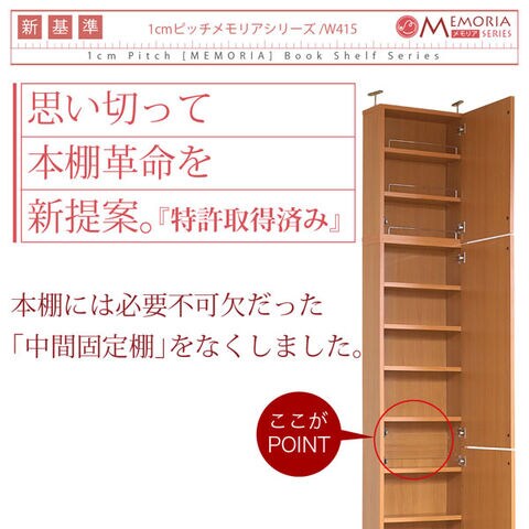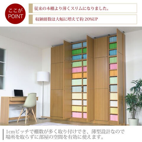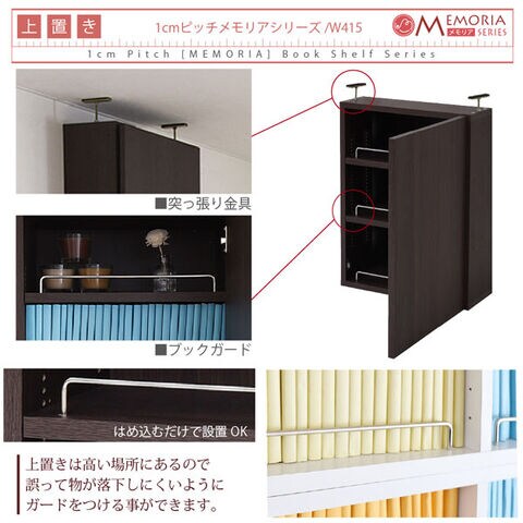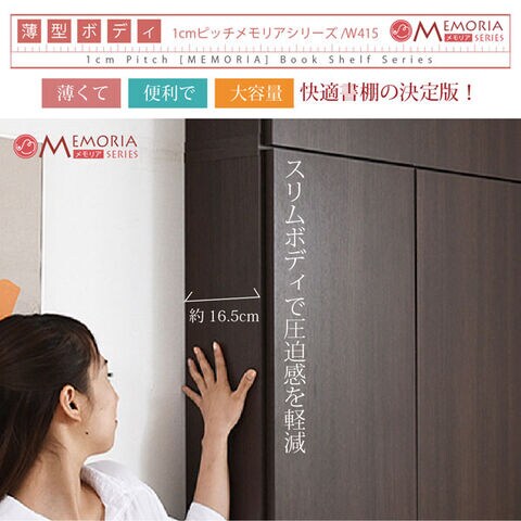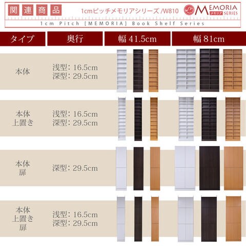 本棚 薄型トビラ付書棚 上置きSET 幅41.5cm 奥行18.5cm MEMORIA 棚板が1cmピッチで可動する自在な棚割り FRM-0100DOORSET-JK