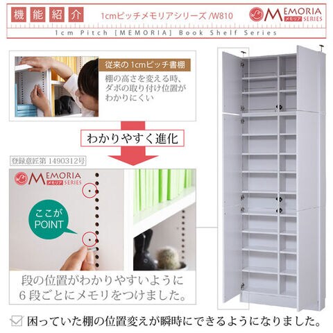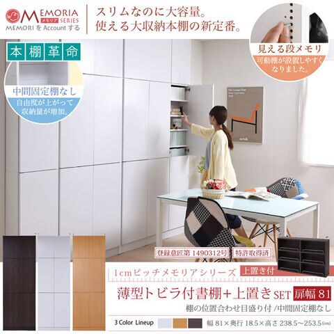 本棚 薄型トビラ付書棚 上置きSET 幅81cm 奥行18.5cm MEMORIA 棚板が1cmピッチで可動する自在な棚割り FRM-0101DOORSET-JK