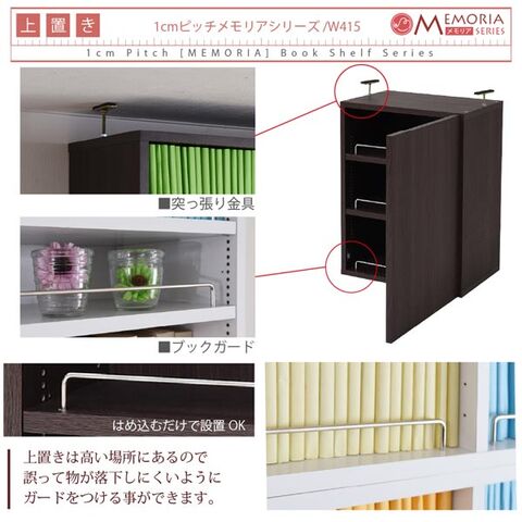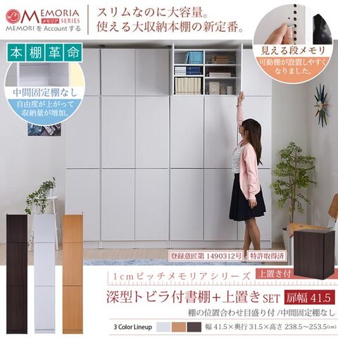 本棚 深型トビラ付書棚+上置きセット 突っ張り 幅41.5cm 1cmピッチ MEMORIA メモリア 奥行ワイドシェルフ 多収納 FRM-0106DOORSET-JK