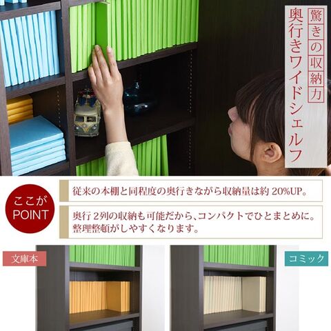 ■深型だから文庫本から大きな辞書まで余裕の収納