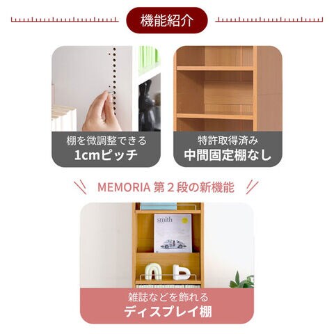 本棚 A4対応 幅81cm 奥行き29.5cm 1cmピッチ MEMORIA メモリア 可動棚 飾り棚付き 大容量 ディスプレイラック オープンラック FRM-0132-JK