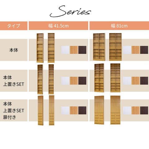 | 仕様 | 【本体】 ・可動棚/3枚 ・飾り棚/2枚 【上置き】 ・可動棚/2枚 【飾り棚】 ・本体上段のみ上から10穴目から設置可能 ・組立時間の目安/大人2人で約60分 |