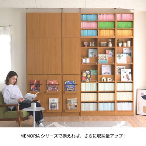 ディスプレイ扉付き 本棚 突っ張り 幅81cm 薄型 1cmピッチ MEMORIA メモリア 可動棚 飾り棚付き 大容量 マガジンラック FRM-0130DOORSET-JK