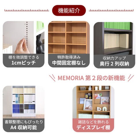 本棚 A4対応 幅81cm 奥行き29.5cm 1cmピッチ MEMORIA メモリア 可動棚 飾り棚付き 大容量 ディスプレイラック オープンラック FRM-0132-JK