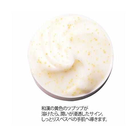 パピリオ ハンドマッサージエッセンスリペアSSの中に混じっている黄色の粒には和漢の恵み8種類の植物エキス(オウゴン、トウキ、カンゾウ、ハトムギ、シコン、オウバク、シャクヤク、オタネニンジン)が凝縮されています。マッサージしながらなじませると、すっと溶けて浸透します。