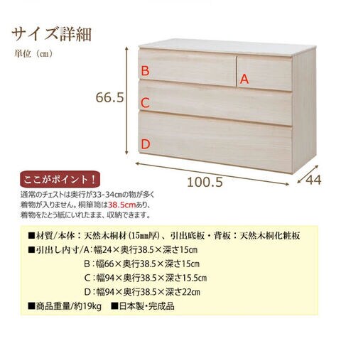 | 材質 | 本体/天然木桐材 引出し底板・背板/天然木桐化粧板 |