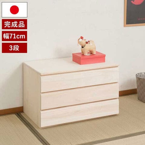 桐洋風チェスト 3段 生地仕上げタイプ 幅71cm 完成品 日本製 総桐箪笥 桐引出し 桐袖出し HI-0100-NS