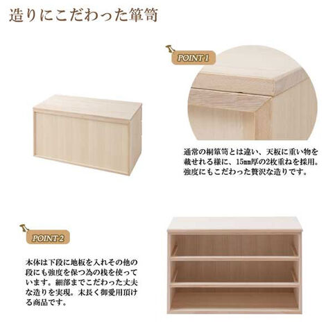 | 材質 | 本体/天然木桐材(15mm厚)、引出し底板・背板/天然木桐化粧板 |