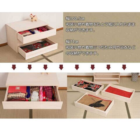 衣類収納に最適な桐タンスにデザイン性をプラス。和室・洋室のどちらにも合う、風格と気品を兼ね備えた逸品。通常の桐箪笥とは違い、天板に重い物を載せられるように、15mm厚の2枚重ねを採用。強度にもこだわった贅沢な造りです。サイズも収納量に合わせて6タイプからお選び頂けます。