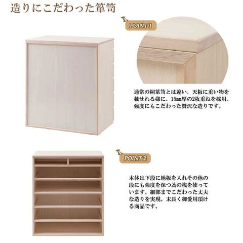 | 材質 | 本体/天然木桐材(15mm厚)、引出し底板・背板/天然木桐化粧板 |