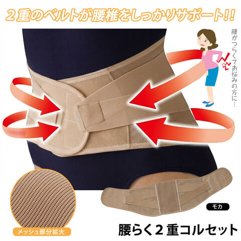 腰らく2重コルセット 腰痛ベルト 腰サポーター 2重ベルト 日本製 蒸れない メッシュ 腰椎 サポート 固定