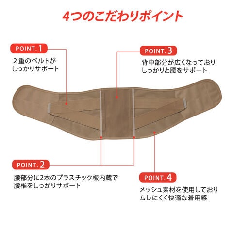 | 仕様 | 2重ベルト構造、プラスチック板2本内蔵、マジックテープ(R)式 |