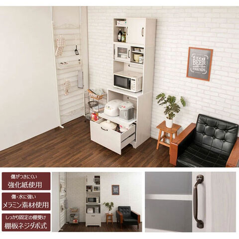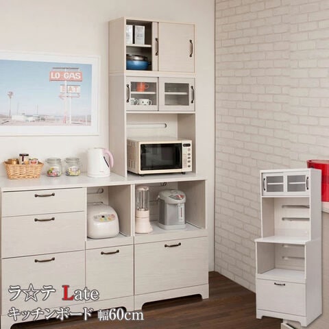 キッチンボード 食器棚 レンジ台 カップボード 家電収納 キッチン収納 幅60cm 北欧 フレンチカントリー Late ラテ ホワイト KT26-009WH-NS