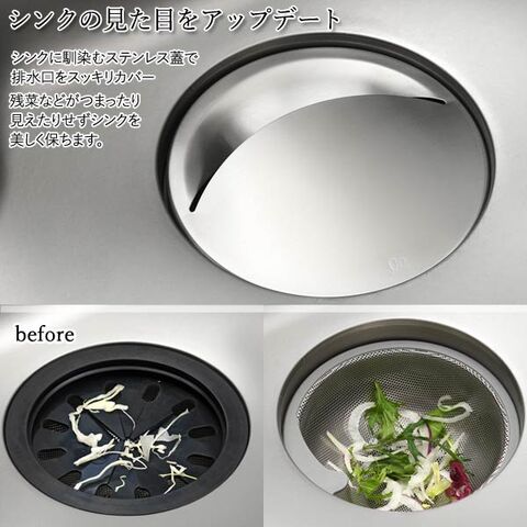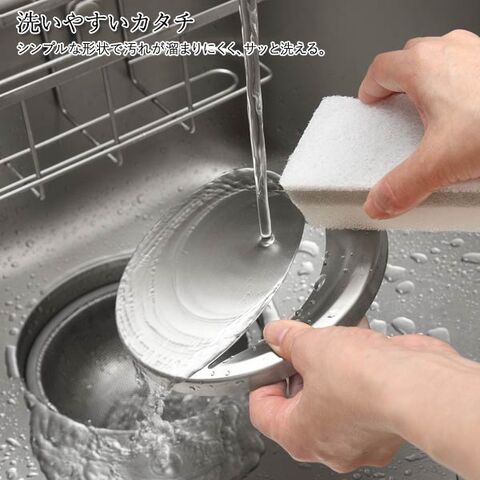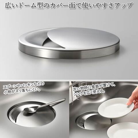 銅配合のステンレスで、ぬめりにくい抗菌ステンレス排水口カバー。銅配合のステンレス素材だから、銅イオンの抗菌効果でぬめりを軽減。広いドーム型のカバー面なので、スプーンやパッキンなどの小物がズリ落ちにくく、洗い物時に食器が置けてシンクを広く使えます。シンプルな形状で、水や汚れが溜まりにくいのでサッと洗えます。シンクに馴染むステンレス蓋なので、排水口をスッキリカバー。シンクの見た目がワンランクアップします。金属加工の街「新潟県燕三条」の職人がひとつひとつ丁寧に仕上げています。標準的な145mm直径の排水口に対応します。
