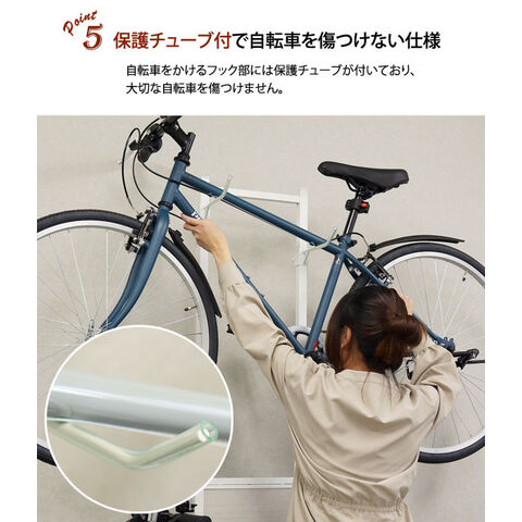 大切な自転車を安心して保管しながら、室内空間の美しいインテリアとしても楽しめる室内用自転車スタンド【Lex】レック 2台用。6段階の高さ調整が可能で、様々なサイズや形状の自転車に対応。2台まで並べて掛けられます。スタンドのフック部分には保護チューブを採用しており、大切な車体を傷つける心配がありません。さらに、重石入りの台座によって高い安定感を実現。また、壁との固定用チェーンも付属し、安全性にも配慮しています。粉体塗装による耐久性・防錆性の高さもポイント。本体には木目調のプレートがあしらわれ、シンプルながらも温かみのあるアクセントをプラス。カラーはブラック×ブラウン木目、ホワイト×ホワイト木目の2色展開、インテリアに合わせてお選びいただけます。機能性と美しさを兼ね備えたこの自転車スタンドで、大切な愛車を丁寧に保管しませんか?
