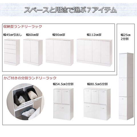 薄型ランドリーラック 幅25cm 2分別タイプ スリム 隙間収納 収納家具 FACE ホワイト FY-0053-NS