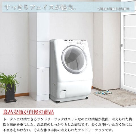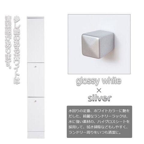 薄型ランドリーラック【FACE】シリーズ。汚れを落としやすく耐久性に優れた光沢のあるハイグロスシートを採用。扉付きで隠せる収納は仕分けしやすくて便利。家族の脱衣分別や、白物色物の分別など洗濯物が仕分けしやすい。自身でポイポイ入れる習慣付けで家事負担も軽減。衣類だけでなくランドリー周りの小物の仕分けにも◎。上段にはバスタオルなど丁度いいサイズ感。デッドスペースなど隙間にタワー型収納を。機能性だけでなく、デザイン性も重視しているので、洗濯空間をより魅力的に演出することができます。