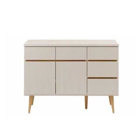 『Solid』ソリッドシリーズはベーシック×洗練のコラボにより生まれたシンプル北欧ライン。小ぶりでありながら、存在感があるのは脚のシャープ感と本体のボリュームが生む絶妙なバランス。リビングキャビネットには引出しが5杯あるので、様々な小物を分別して収納するのに大活躍。キッチンカウンターとしても使えて、カトラリーなどのキッチンアイテムもたっぷり収納できます。取っ手のないプッシュ式扉がすっきりとデザイン性もアップ。掃除も楽な高めの脚付きで、お洒落感漂う仕上がり。安心・安全の日本製。届いてすぐにお使いいただける完成品(脚部のみ取付け)です。