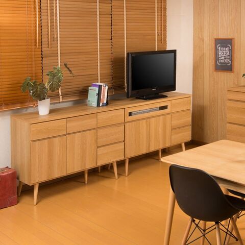 『Solid』ソリッドシリーズはベーシック×洗練のコラボにより生まれたシンプル北欧ライン。小ぶりでありながら、存在感があるのは脚のシャープ感と本体のボリュームが生む絶妙なバランス。テレビキャビネットはリビングダイニングでソファからでも見やすいミドル高さに設定。ボードとしてリビングのあらゆるものをしまっておくのに大活躍。取っ手のないプッシュ式扉がすっきりとデザイン性もアップ。掃除も楽な高めの脚付きで、お洒落感漂う仕上がり。安心・安全の日本製。届いてすぐにお使いいただける完成品(脚部のみ取付け)です。