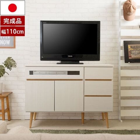 テレビボード 幅110cm 北欧シンプル SolidNeo リビングキャビネット 日本製 完成品 ホワイト NK04-025WH-NS