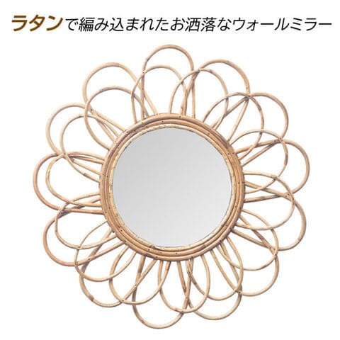 ウォールミラー ペタル 鏡 玄関 リビング ラタン 壁掛けミラー 201200496-LI