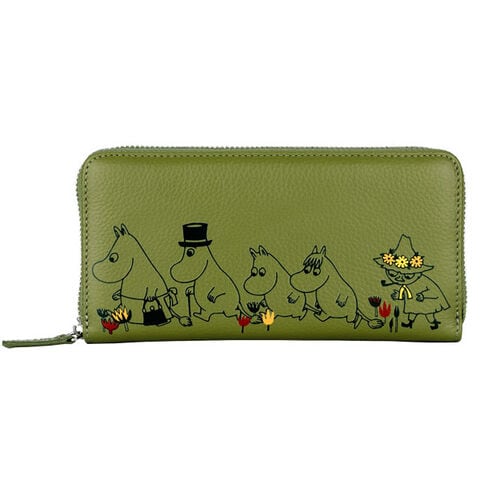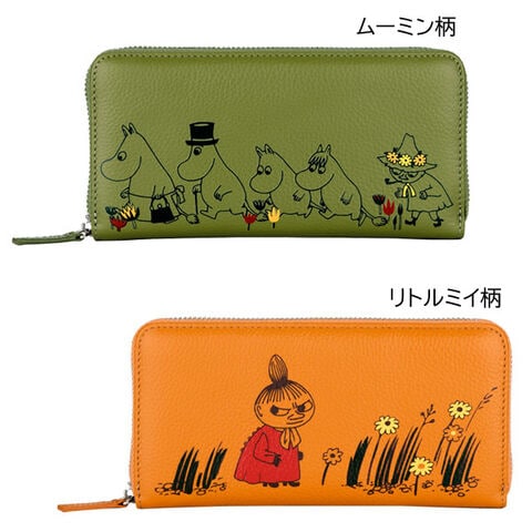 トーベ・ヤムソンによって生み出された世界中で愛されるキャラクター「ムーミン」の本格牛革長財布。大きく開いて使いやすいラウンドファスナー仕様。札入れ×4、カードは9枚収納可能、小銭入れもついていて、たっぷり収納することができます。牛革を使用しているので、使い込むほどに味わい深い使用感になっていきます。グリーンカラーの「ムーミン柄」とオレンジカラーの「リトルミイ柄」の2タイプ。オトナも使いやすいデザインでプリントも素敵!手に取るたびに嬉しくなる、ムーミンファンにはたまらないお財布です。