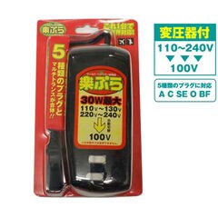 この変圧器MX-30は、AタイプとCタイプのプラグ地域のコンセント形状に対応でき、日本対応100V電化製品と海外110Vや240Vコンセント(電気供給差込)との間で電圧の変換を行ってくれます。30Wを超える消費電力の高い電化製品には使用できませんので、使用したい電化製品の消費電力をお調べいただいた上でご購入ください。