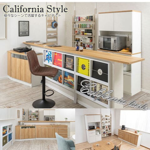 カリフォルニア風キッチンボード 幅89.5cm OCEAN バイカラー 家電収納 食器棚 食品ストック 日本製 完成品 IR-0039-NS