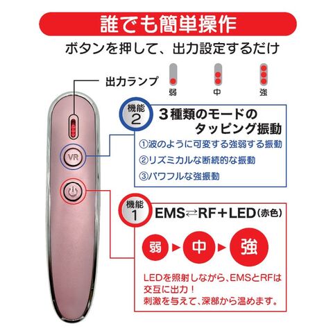 | 仕様 | EMS・RF(交互出力)、振動・赤色LED、防水(IPX5) |