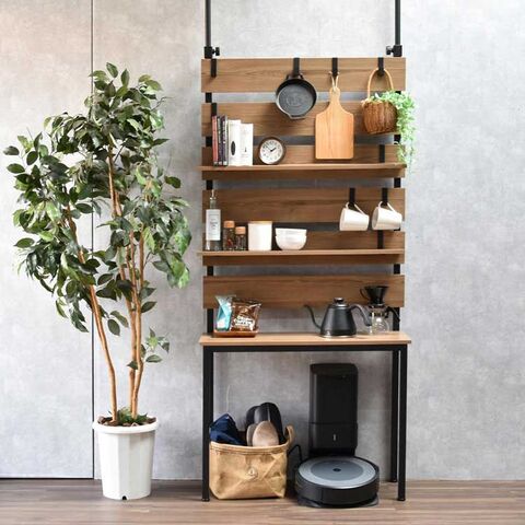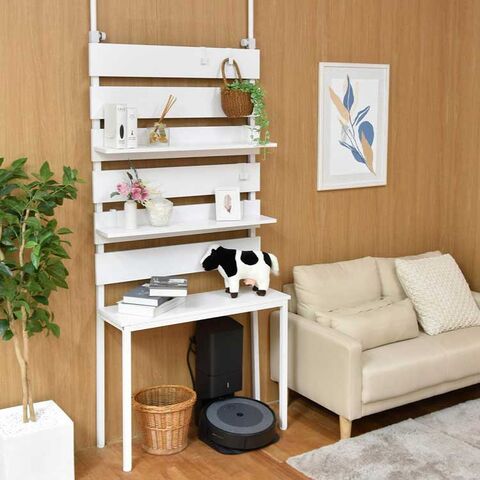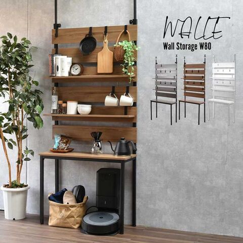 「お掃除ロボットや石油ファンヒーターの上、もったいない空間になっていませんか?」 WALLEは、そんなお部屋のデッドスペースを有効活用するために生まれた、新しい形の壁面収納ラックです。脚の上に置かれた棚板は取り外し式になっているため、上からお掃除ロボのごみの回収もできて便利。お掃除ロボやファンヒーターの上など、今まで諦めていた場所が便利な収納スペースに早変わり。可動棚2枚とフック7個が付属し、置く・掛けるのレイアウトは自由自在。幅はスリムな45cmとワイドな80cmの2タイプ。カラーは北欧モダンな3カラー展開です。