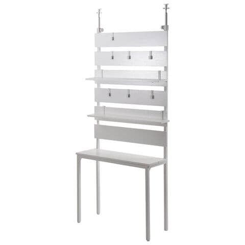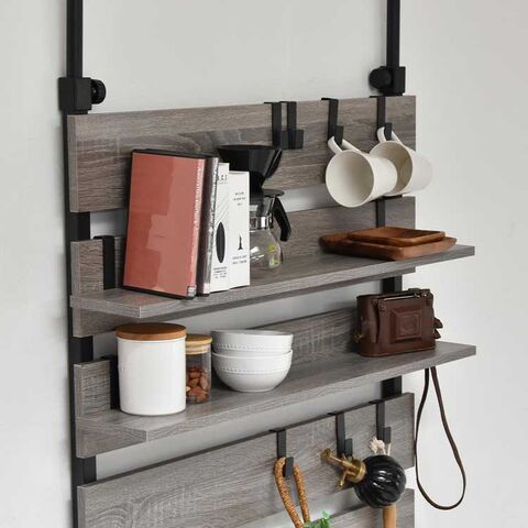 | 仕様 | 耐荷重/棚板約15kg、引っかけ棚約5kg(1枚につき)、フック約1kg(1本につき)=全体約32kg、組立時間約60分(1人) |