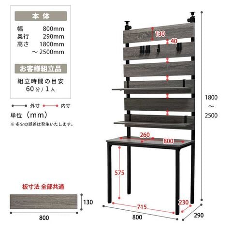 | サイズ(約) | 幅800×奥行290×高さ1800~2500mm |