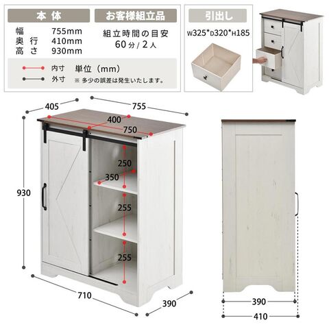 仕様 転倒防止パーツ付き、組立時間の目安/2人で約60分