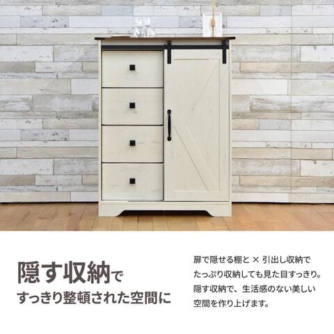 スライドドア付きチェスト4段 Farm house ハイタイプ