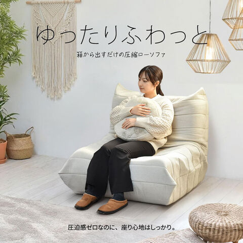 ■届いたその日に、極上のくつろぎを。箱から出すだけで膨らむ圧縮タイプのローソファ