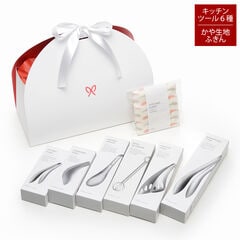 | サイズ・重量(約) | トリワケトング/全長14.7×高さ4.5cm・60g もりつけトング/全長25×高さ3.8cm・77g ゆびさきサーバートング/全長21×高さ5.2cm・85g あげものトング/全長23×高さ4cm・45g ソースもすくえるガッシリトング/全長25.7×高さ4.9cm・105g ごはんのおともトング/全長13.5×高さ2.5cm・28g かや生地ふきん/30cm×30cm・5g |
